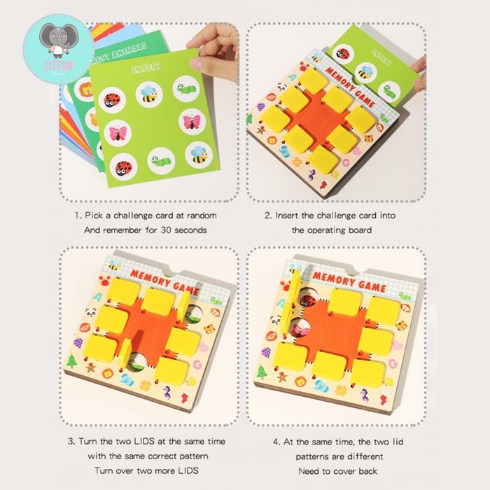 - Хүүхэд хаалттай цонхыг нээж, доторх зурагны байрлалыг санаж, ижил хосыг олдог тул богино хугацааны санах ой хөгждөг.