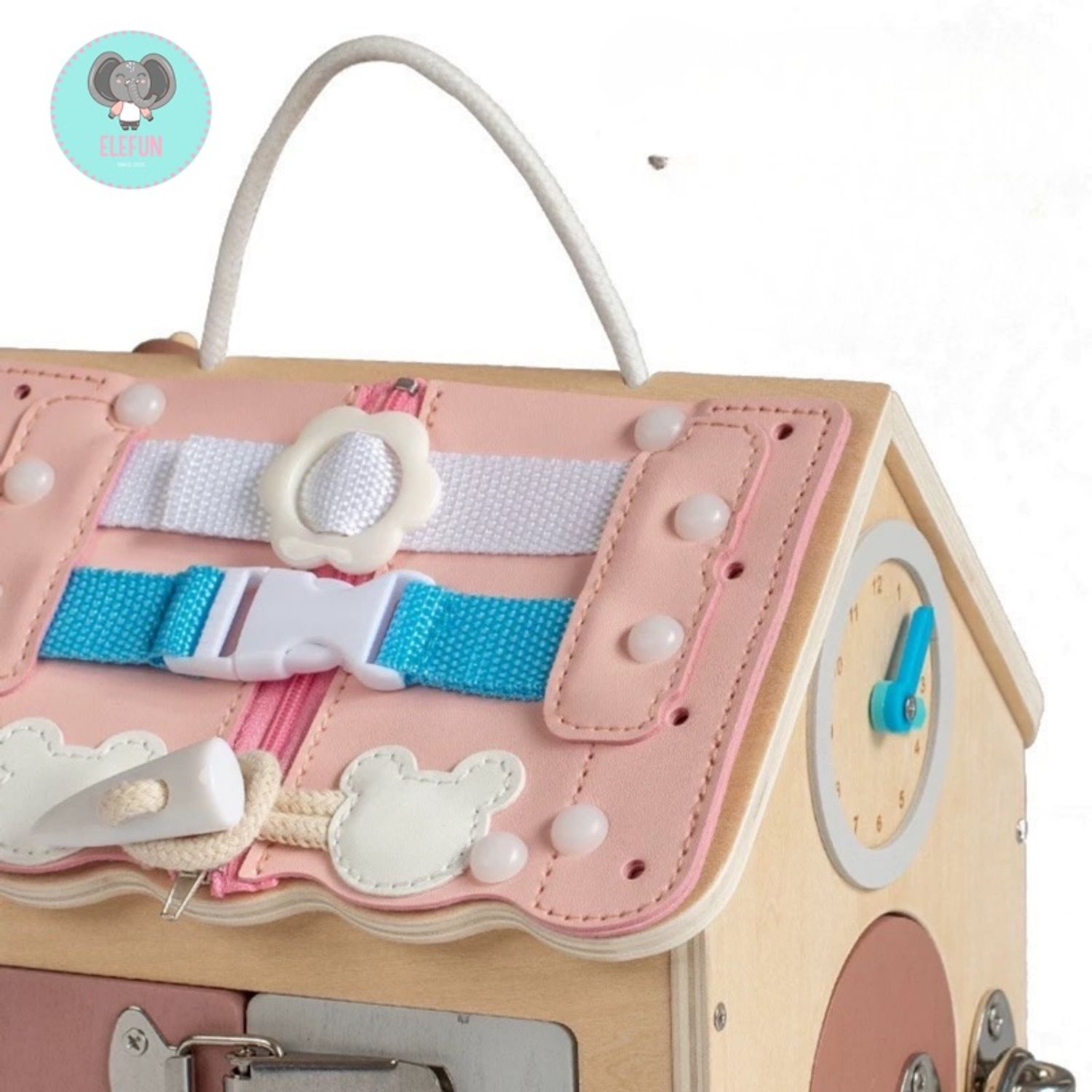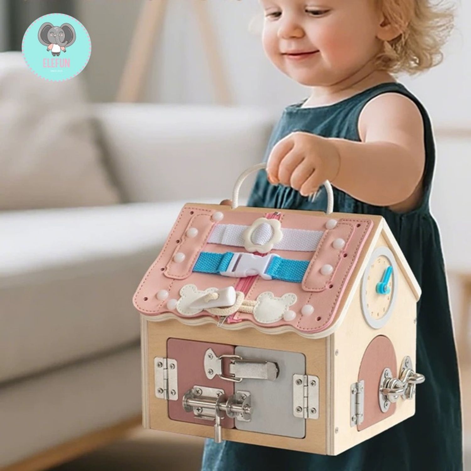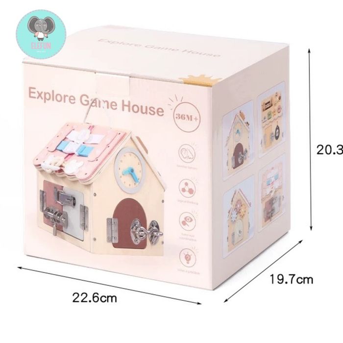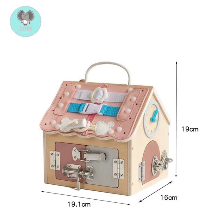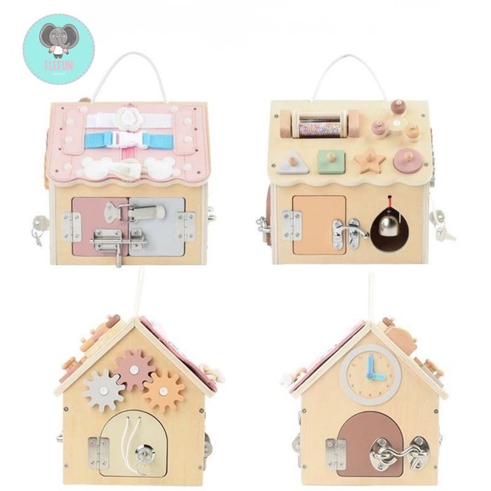Montessori wooden house нь хүүхдийг бодит амьдралын үйлдлээр дамжуулан суралцахад чиглэсэн, олон үйлдэлтэй (activity) модон тоглоом юм. Ихэвчлэн хаалга, цоож, түгжээ, товч, шургуулга, хэлбэр тааруулах хэсгүүдтэй байдаг.